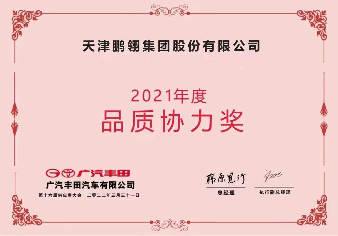 米兰体育荣获广汽丰田2021年度“品质协力奖”和“原价协力奖”