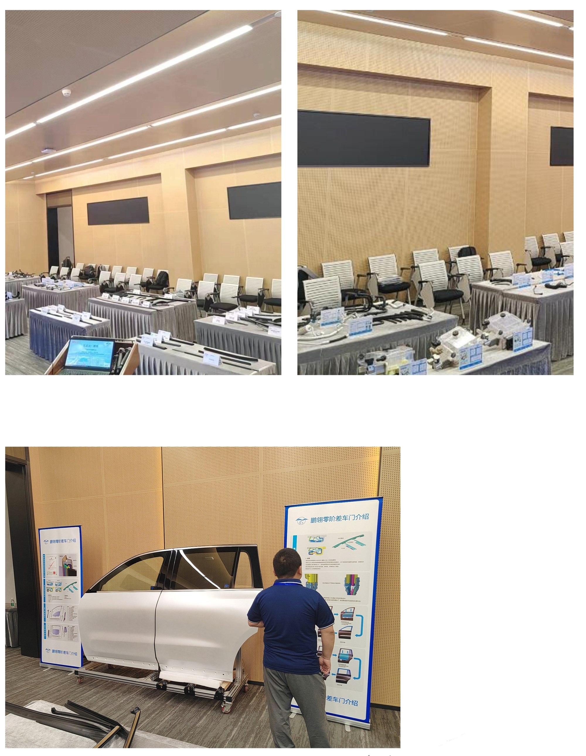 向客户介绍了最新项目零阶差车门密封系统的研发成果,现场展示了改制的零阶差车门样架,可直观的感受米兰体育零阶差密封系统在侧围上实现 “镜面”效果,同时展示了专利产权的获取情况。针对于低成本轻量化方案,向在场人员展示了微发泡密实胶、薄钢带、TPV欧式导槽产品,能够满足新能源汽车低成本轻量化的需求。