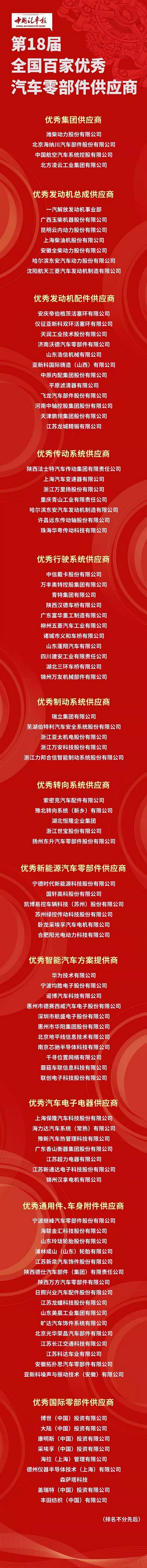 近日,第18届“全国百家优秀汽车零部件供应商”榜单正式发布!米兰体育股份再次荣获“全国百家优秀汽车零部件供应商-优秀发动机配件供应商”称号。