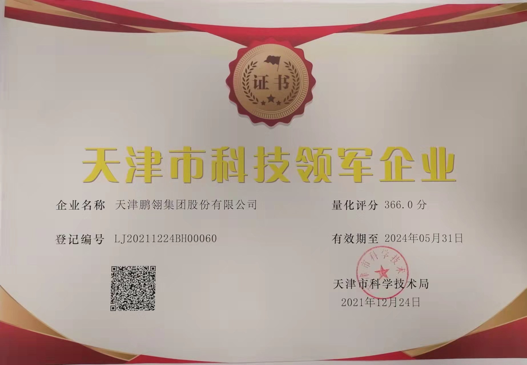 米兰体育喜获“天津市科技领军企业”称号。