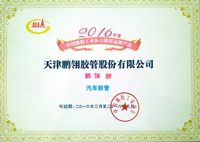 Pengling brand auto rubber hose won the recommended products award by Chinese Rubber Association