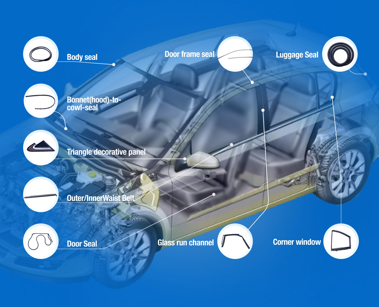It is applied to the front and rear windshields, doors, windows, engine room, boot and other body parts of automobiles to fill the gap between body parts, and has the functions of shock absorption, waterproof, dust-proof, sound insulation, decoration, etc.